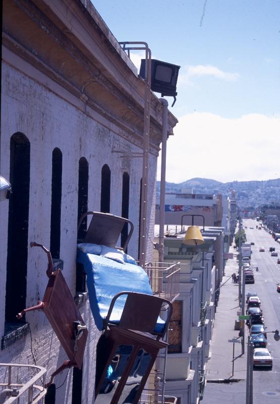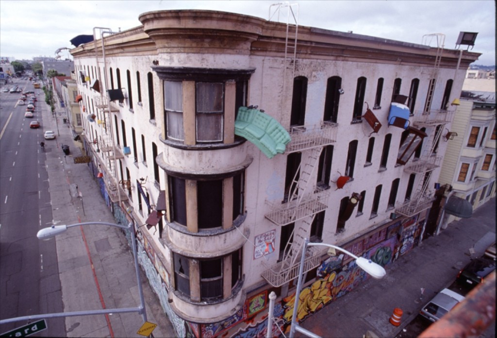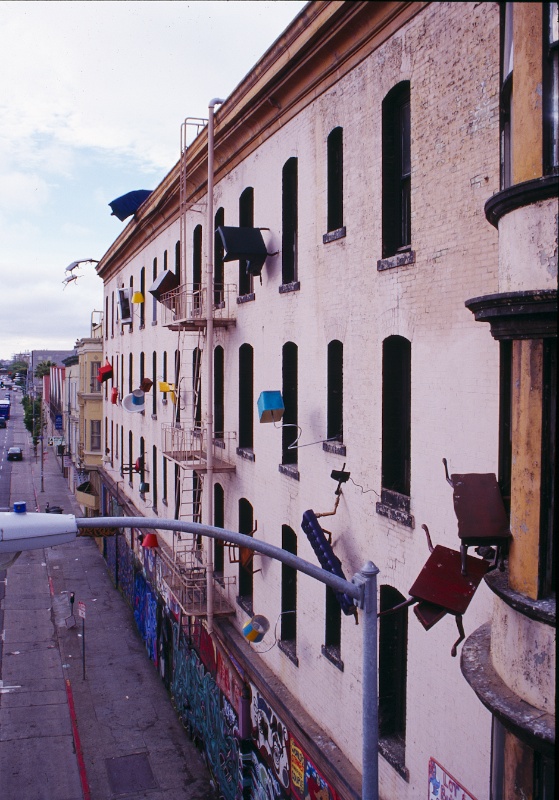 Since Defenestration’s creation by Goggin 17 years ago with over 100 volunteers, San Francisco has delighted in the functioning Lamps, ringing Telephones, Leaping Tables, and Craning Clock to name a few of the 35 sculptures “thrown out the window” of DEFENESTRATION.