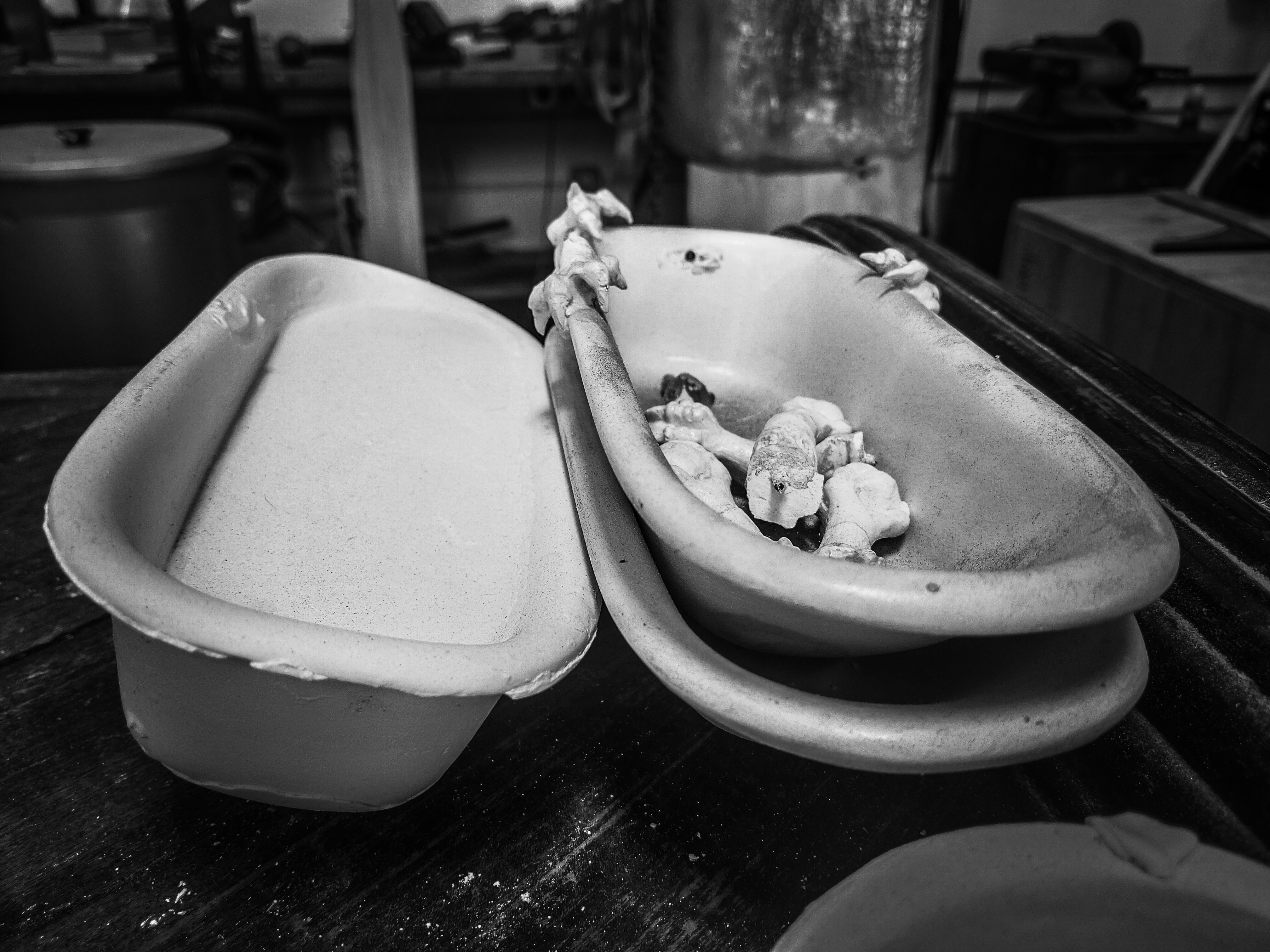 Since the California Gold Rush, Petaluma and the Petaluma River have both served as a vital trading hub and shipping corridor with San Francisco. Local eggs and produce were exchanged for manufactured goods, including the iron facades of many historical buildings in downtown Petaluma. Cast iron claw and ball bathtubs were also received from trade with San Francisco and supplied to the growing community. Many claw and ball bathtubs procured from this trade activity are still in use at many local residences. We are using some of these specimens to create the work.